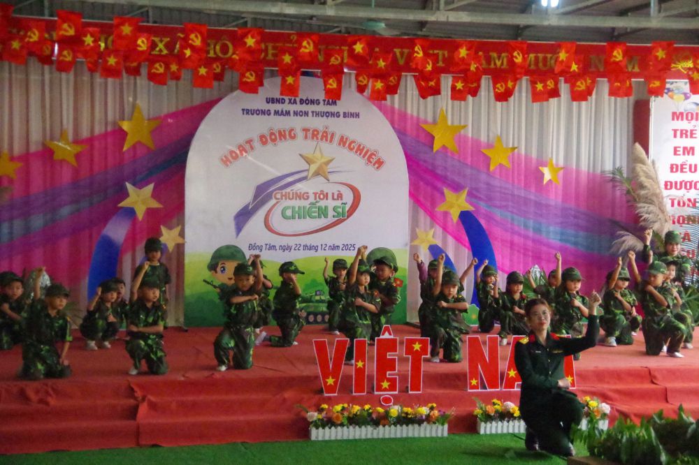 Hòa trong không khí hướng về kỷ niệm 81 năm ngày thành lập Quân đội nhân dân Việt Nam (22/12/1944 - 22/12/2025). Nhằm tạo môi trường học tập trải nghiệm sinh động, góp phần giáo dục kỹ năng sống và bồi dưỡng tinh thần yêu nước cho trẻ mầm non. Sáng ngày 22/12/2025 Trường Mầm non Thượng Bình đã tổ chức chương trình trải nghiệm với chủ đề “Chúng tôi là chiến sĩ” cho các bé trong toàn trường.
