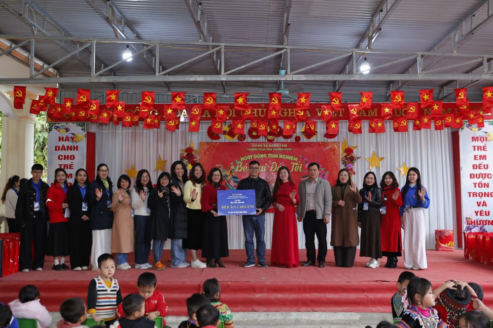 Sau các hoạt động trải nghiệm dành cho các bé, nhà trường được đón nhận những phần quà ý nghĩa từ Đoàn thiện nguyện đến từ Khoa Khoa học liên ngành – Ngoại ngữ – Tin học, Học viện Hành chính và Quản trị công. Đoàn đã trao những món quà ý nghĩa cho nhà trường và những phần quà dành các bé, góp phần mang đến một mùa Tết ấm áp, tràn đầy yêu thương.